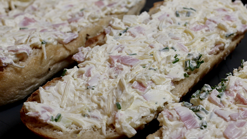 Schmandbriegel sind ein einfaches und herzhaftes Vesper. Man kann sie zum Samstagabendfilm essen oder für Gäste zubereiten, da sie sich gut vorbereiten lassen. Mit einem gemischten Salat sind sie eine vollwertige Mahlzeit.