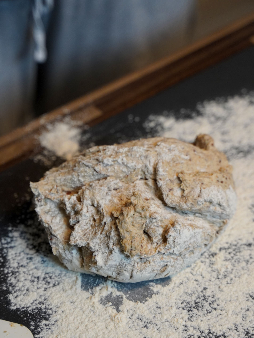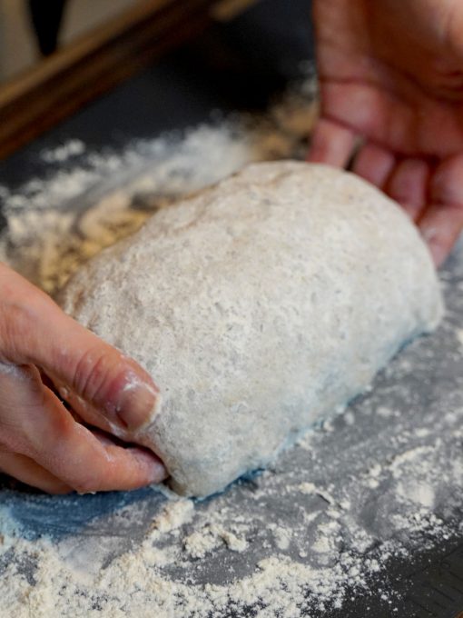 Lege den Teig mit dem Teigschluss (der „Naht“) nach unten in die Kastenform.